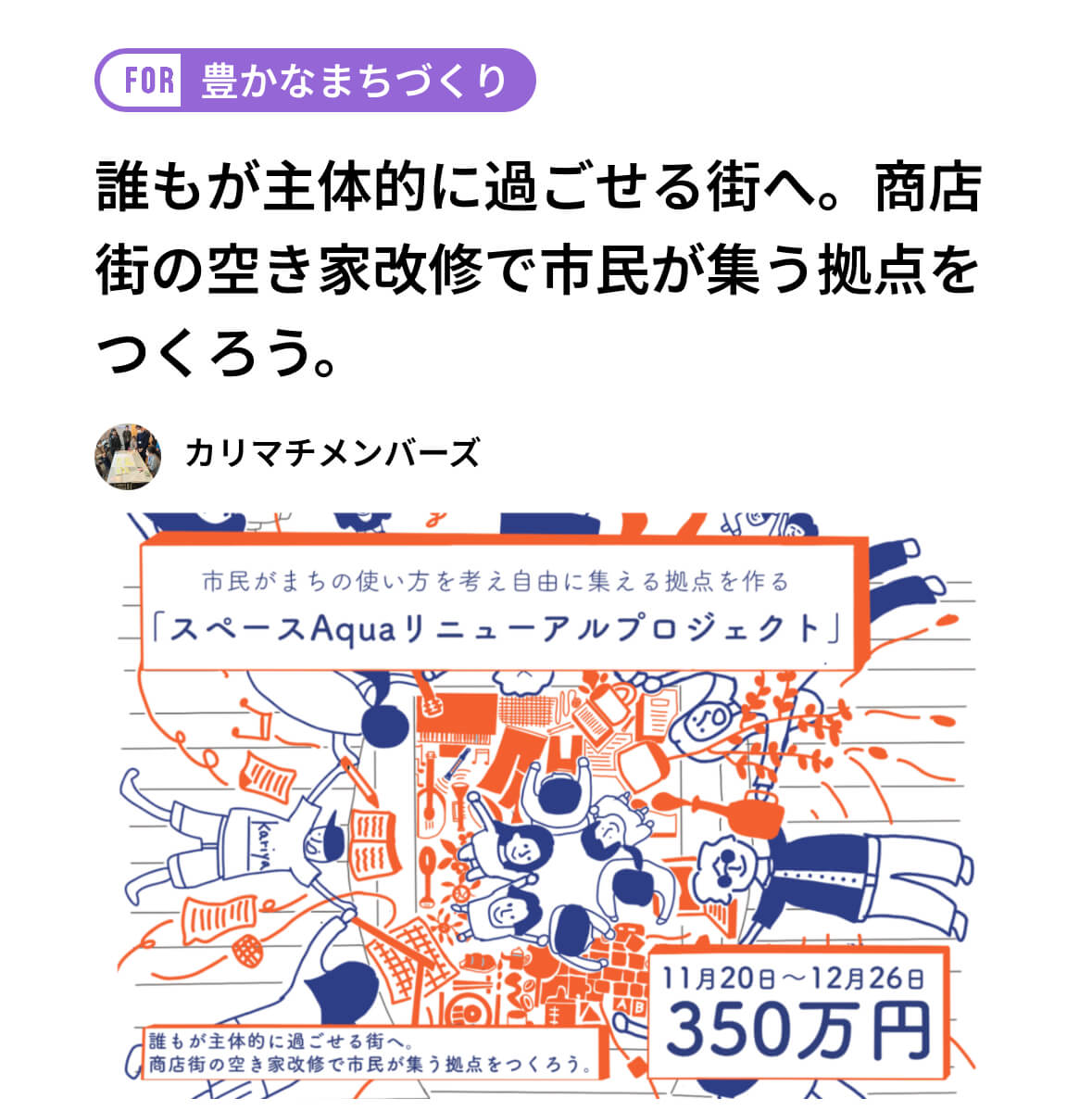 愛知県刈谷市「スペースAqua リニューアルプロジェクト」のクラウドファンディングに挑戦中です!