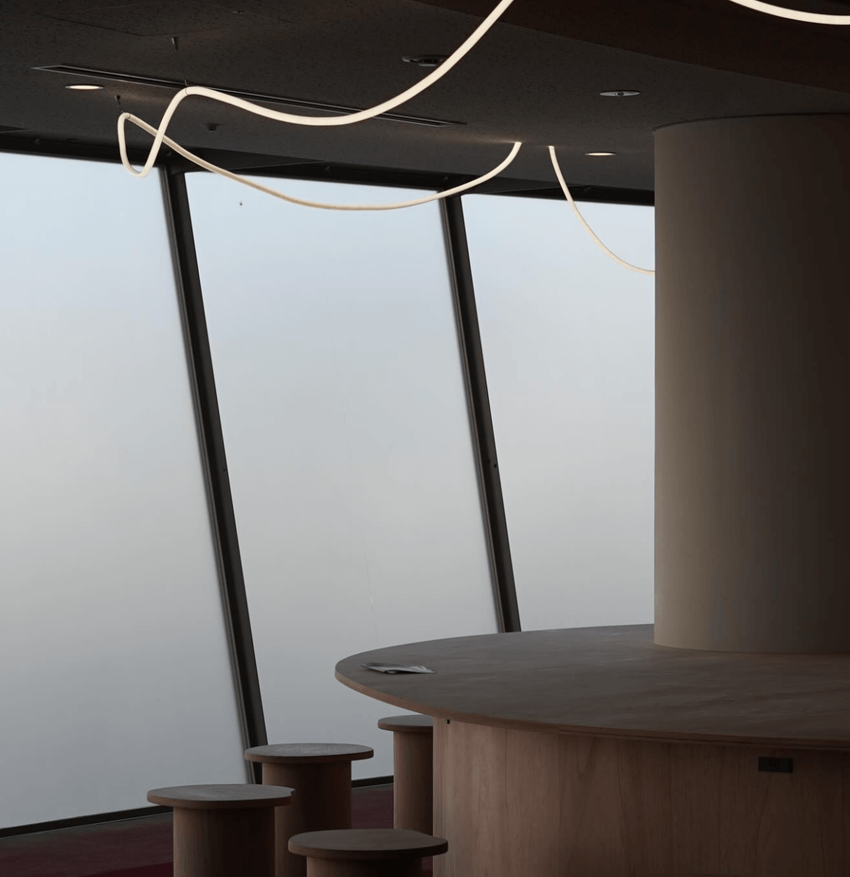 空間は、大きく太い既存の柱を拠り所にするようにたくさんの居場所や大きさを設計しました。